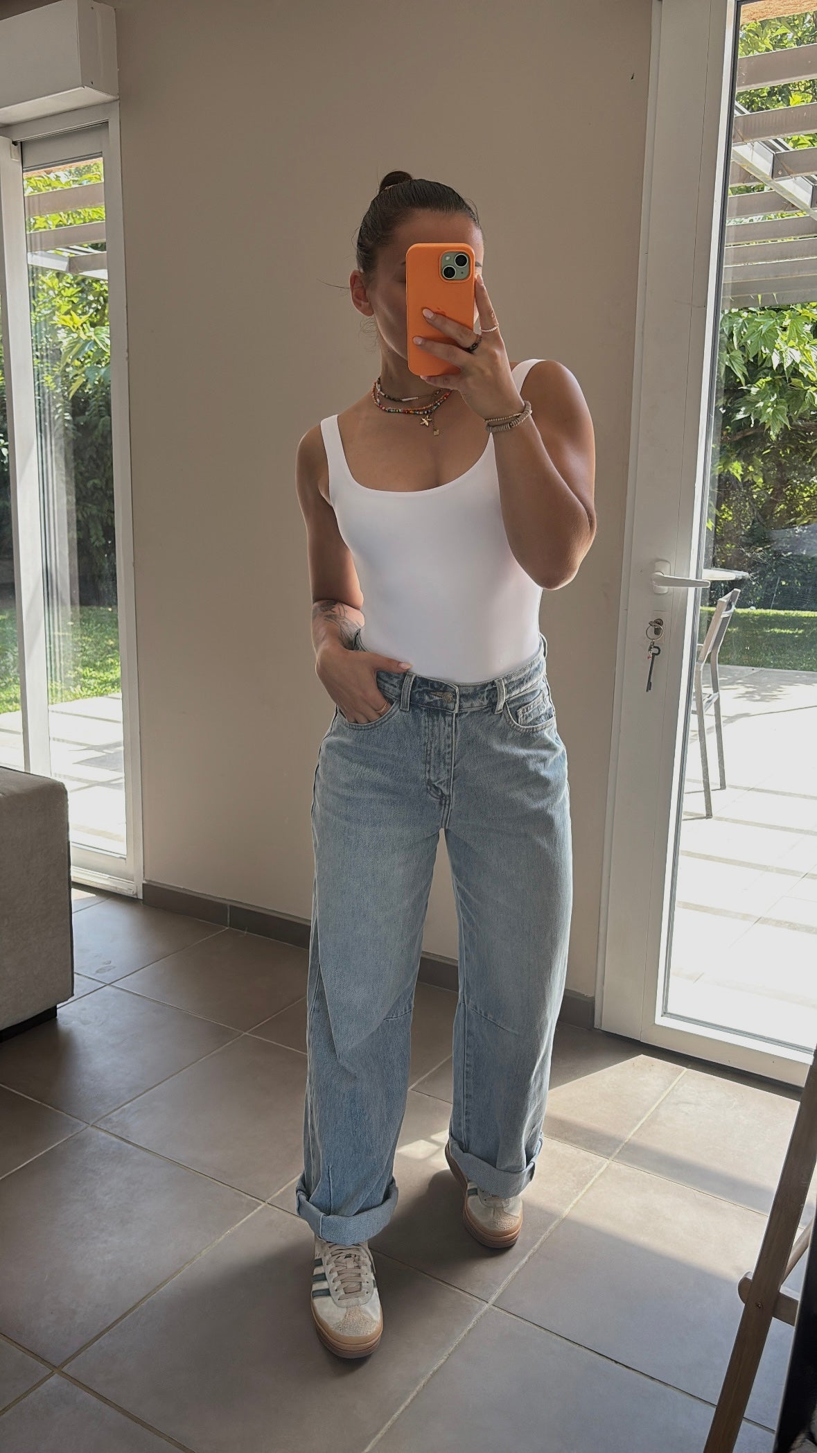 Un denim comme on les aime : bien coupé, bien pensé, et résolument flatteur. Avec sa coupe balloon, ce jean offre un volume subtil sur la jambe tout en marquant joliment la taille. Un jeu d’équilibre qui allonge la silhouette et apporte une touche mode affirmée.