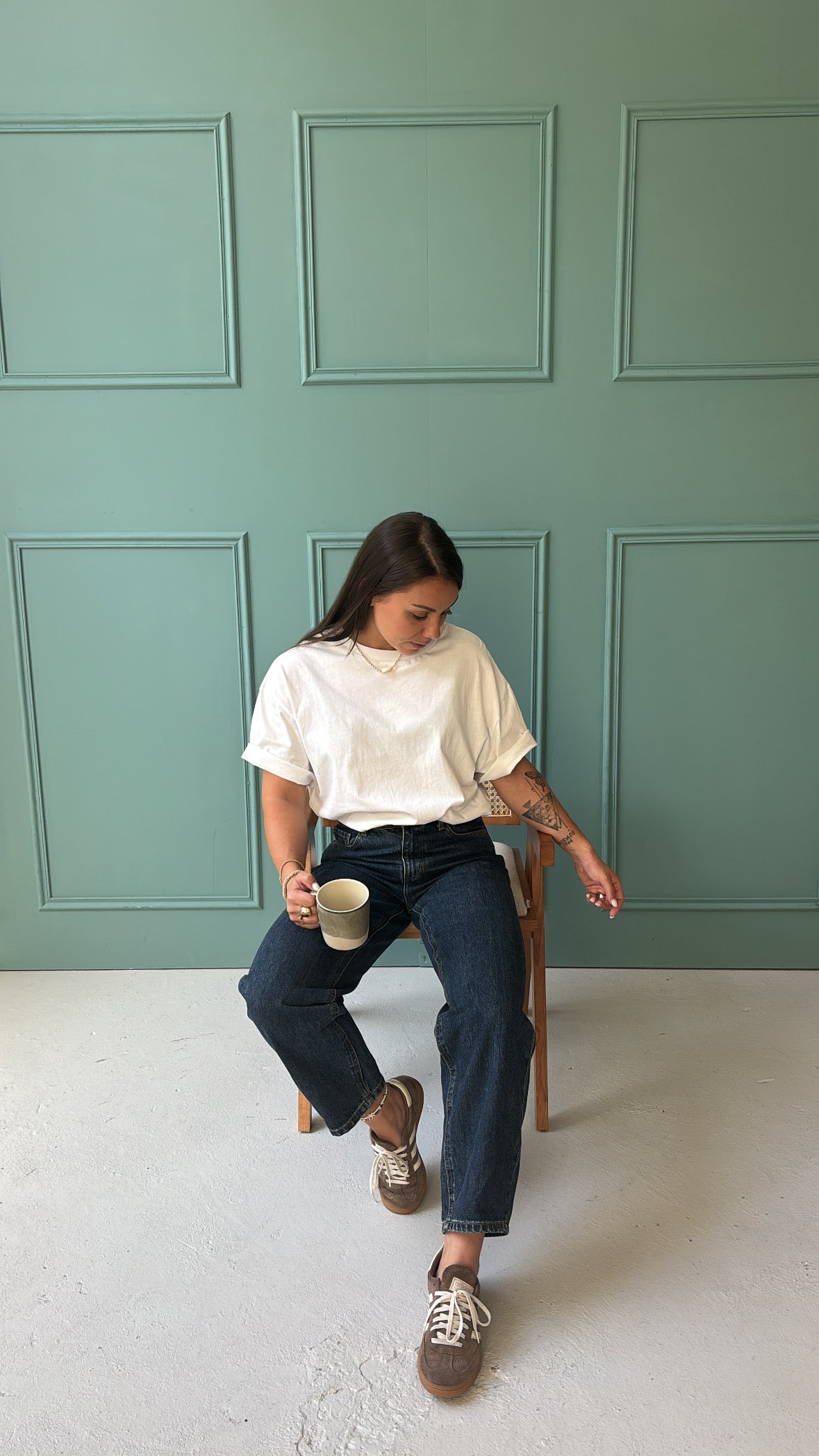 Un indispensable du dressing revisité : ce t-shirt blanc à la coupe ample associe confort et style minimaliste.