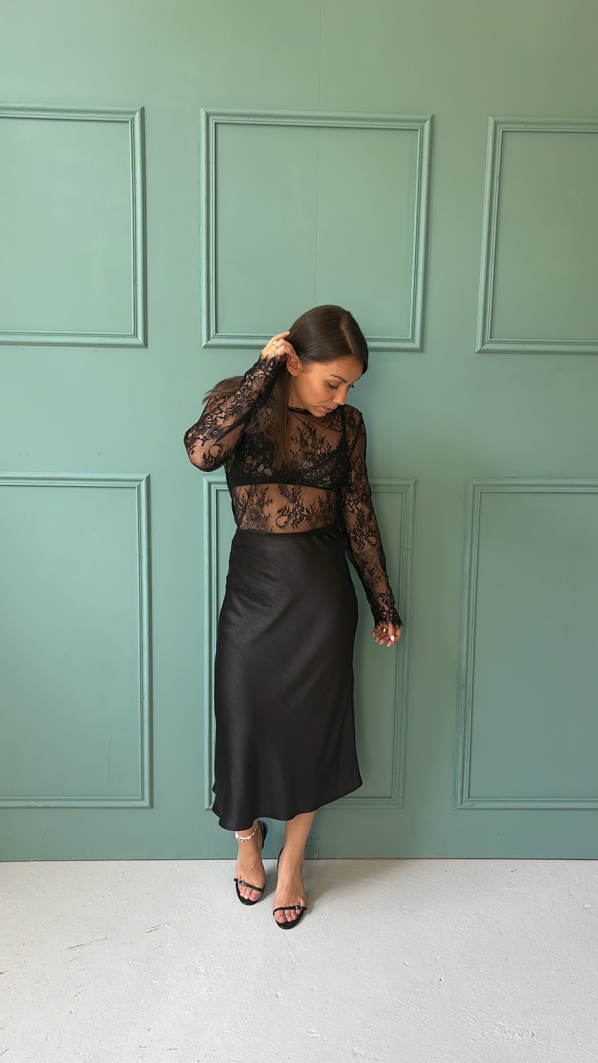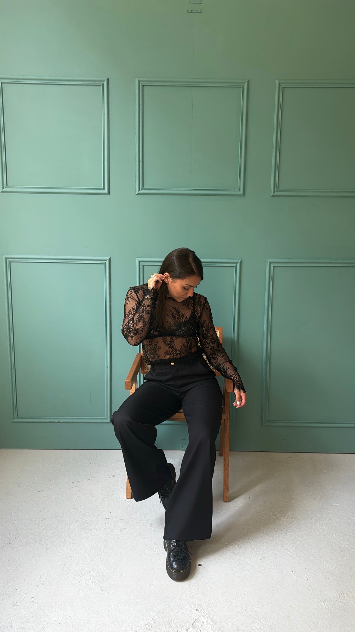 Laissez parler votre féminité avec ce top en dentelle noire au style raffiné et intemporel.